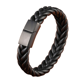 फैशन पंक शैली चमड़े के हाथ से बुने पुरुषों के कंगन बहु-रंग चुंबक क्लैंप स्टेनलेस स्टील बांगल पार्टी गहने उपहार