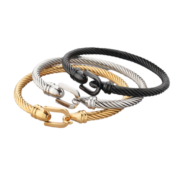 Pulseiras de Fio de Aço Inoxidável Torcido com Fecho de Gancho, Estilosas Pulseiras Romanas Digitais para Mulheres e Meninas