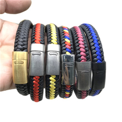 Atacado de aço inoxidável homens Pulseira personalidade pulseira de couro trançado com jóias conector fecho QXSZ012